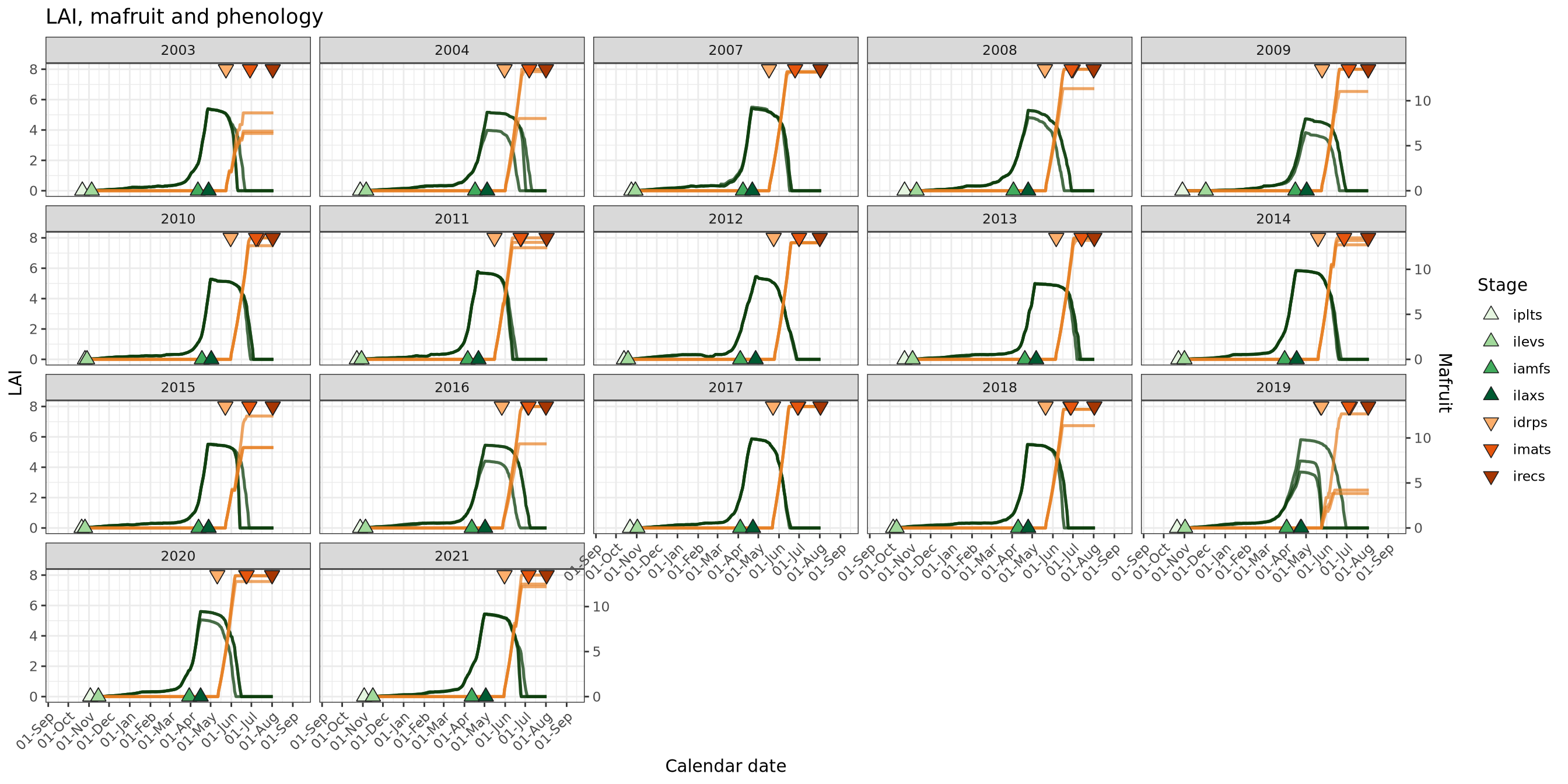 mafruit) et stades phénologiques clés, pour toutes les situations.