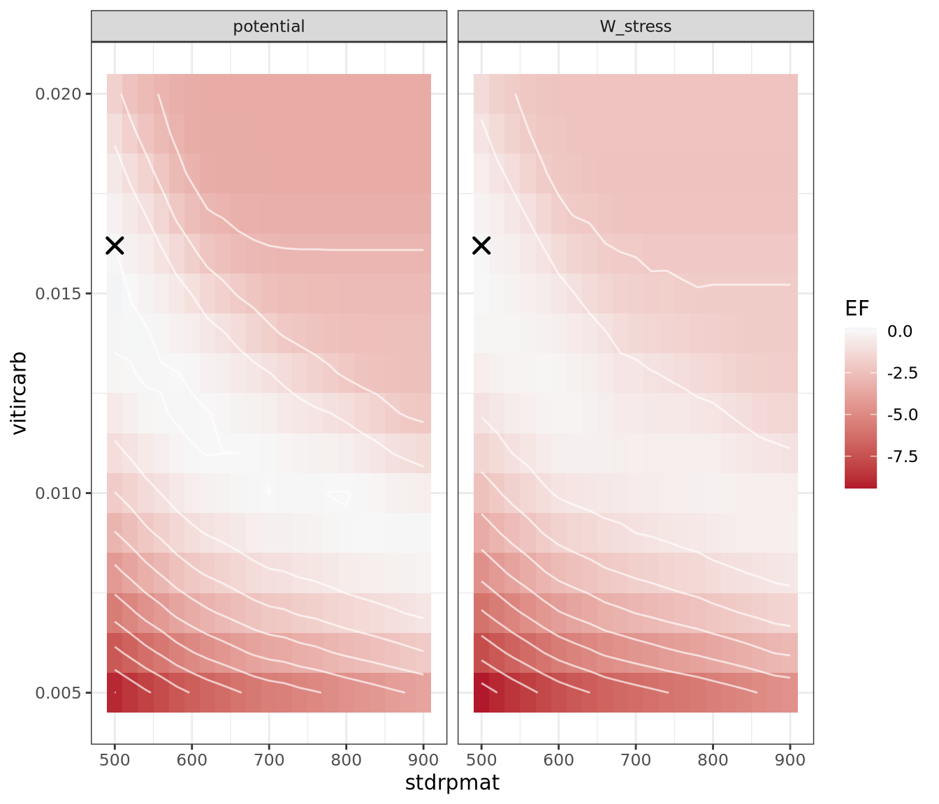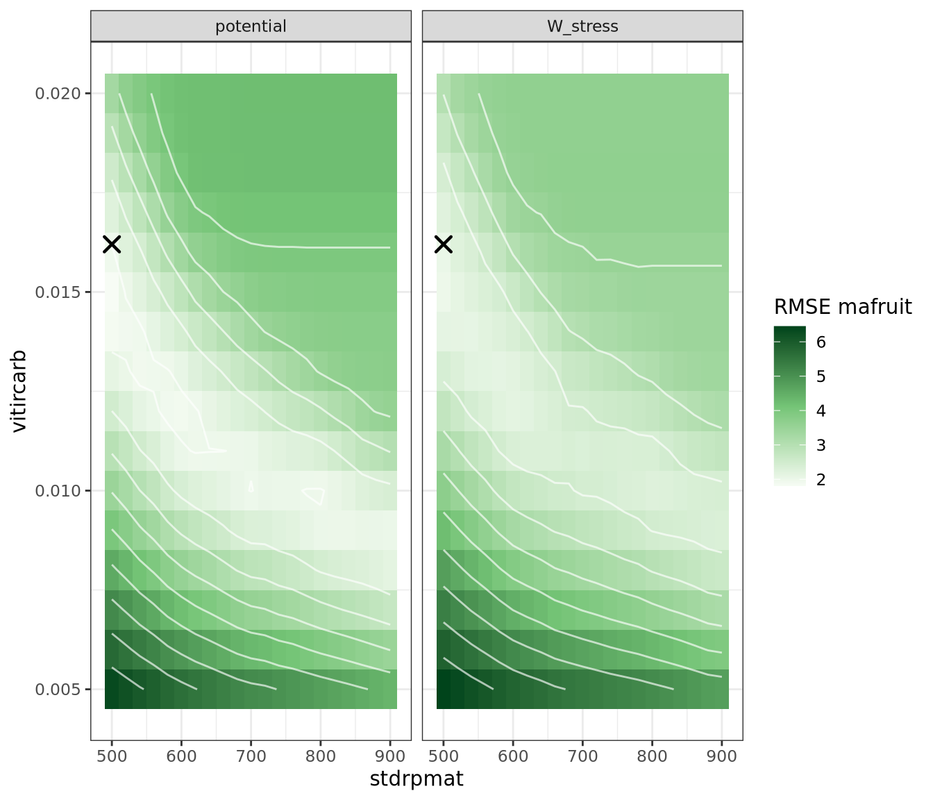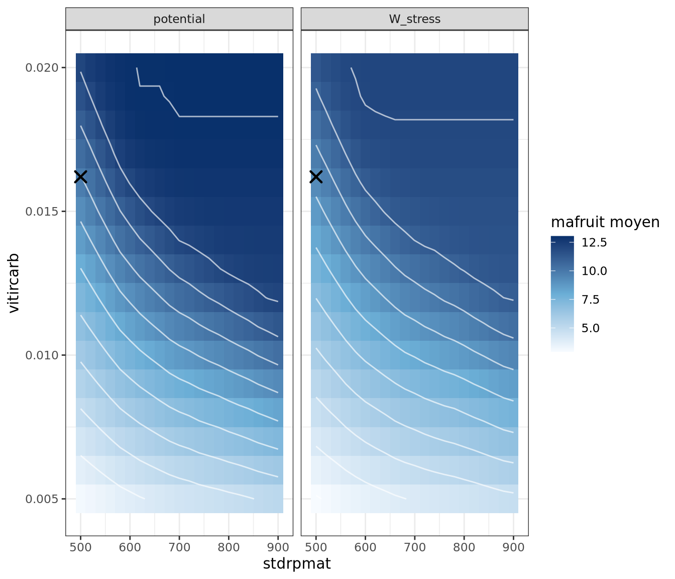 mafruit moyen pour stdrpmat et vitircarb autour de la zone calibrée.